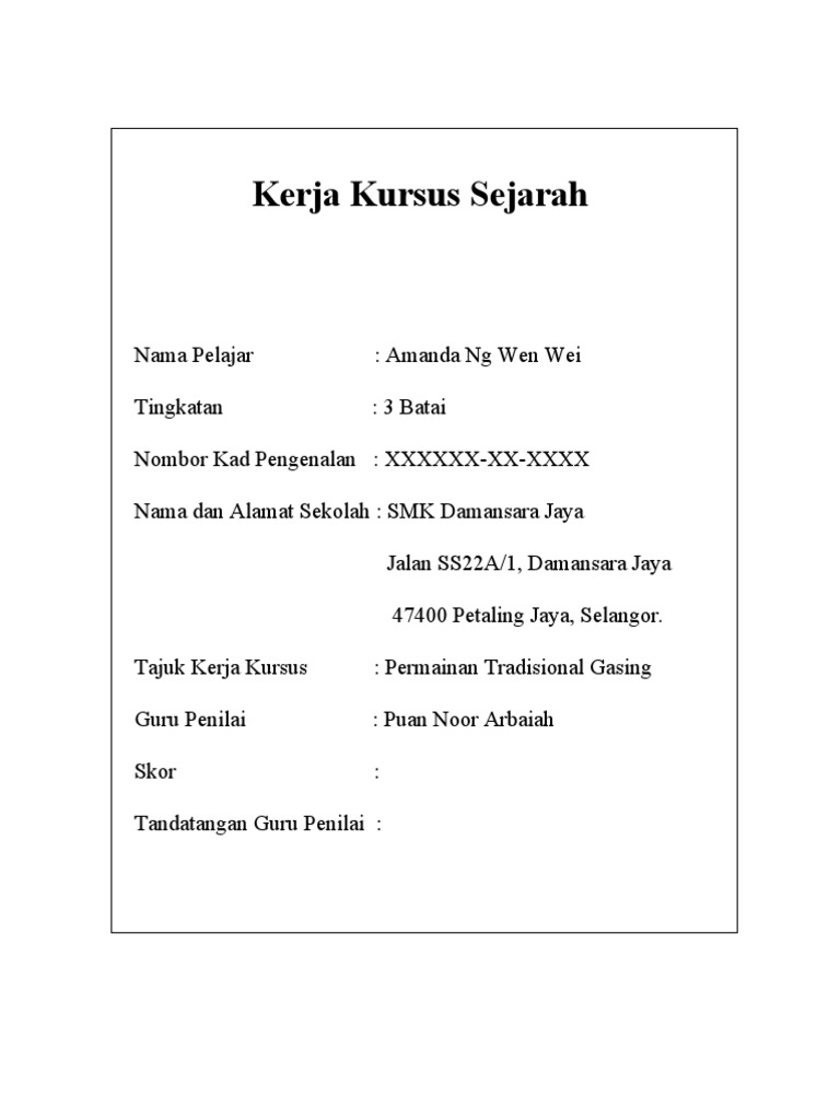 Kerja Kursus Sejarah Tingkatan 3 Pdf